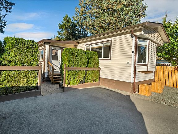 Immaculate and meticulously cared for 3-bedroom, 1-bathroom home in the desirable Quinsam Mobile Home Park. This bright and spacious 1,184 sq. ft. unit offers an inviting layout with an addition (2018) that includes a large bedroom and office space. The bathroom has been fully updated, and the home features numerous upgrades, including new electrical sticker approval (2018), new PEX plumbing, a 2-year-old roof, and newly replaced flooring in the living room and third bedroom (2025). Enjoy the gorgeous, sunny, and peaceful garden — fully fenced and generously sized for a mobile home park — perfect for relaxing or entertaining. The newer saltwater hot tub, oversized TV, and portable air conditioning unit with proper wall venting are all included if desired. Quinsam Mobile Home Park is pet-friendly (1 dog permitted) with no age restrictions. Located just steps from the river, fishing, hiking, and biking, while still being close to all city amenities. Move-in ready and truly one of a kind!