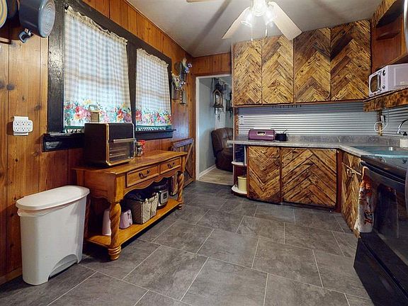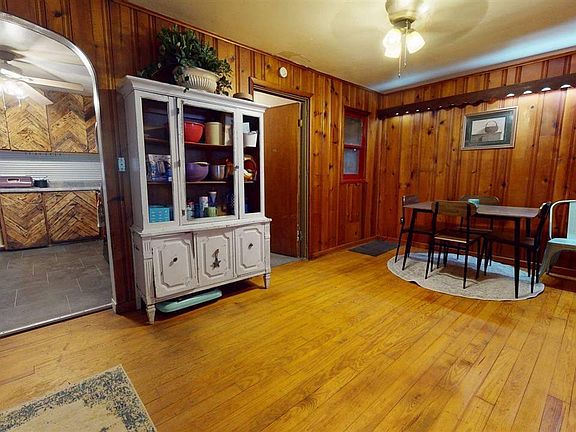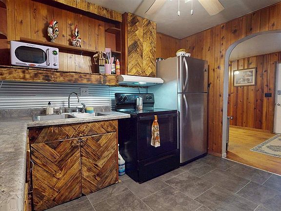 Full basementCovered front porchGenerous master bedroomCovered back patioWarm cedar panelingCustom cabinetry