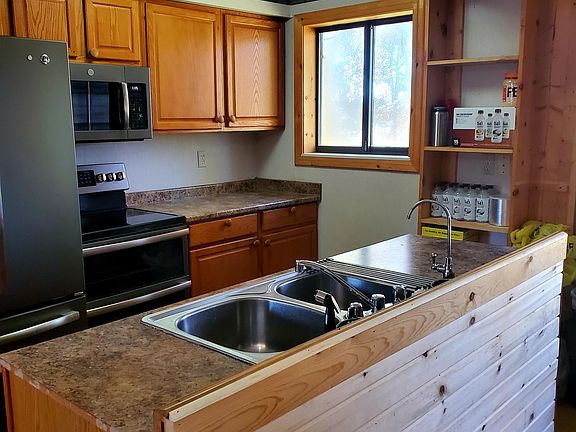 Secluded 6.85 acres with a log sided home and 2 large pole barns one is 30 x 80 with 12 ft ceiling the other is 30 x 30. This home features a long driveway back with a pond on the side. The home features 2 bedrooms and 2 bathrooms. The basement or lower level is a walkout with a large enclosed porch. It is like a raised ranch. Open floor plan and the living room has a cathedral ceiling. Beautiful woodwork throughout most of the home. All appliances are 2 years old, the dishwasher has neverbeen hooked up and still in the box. Large deck that overlooks the pond and goes around to the side of the house. House has a ductless air conditioner and hot water boiler heating. Only 3 miles from US127.