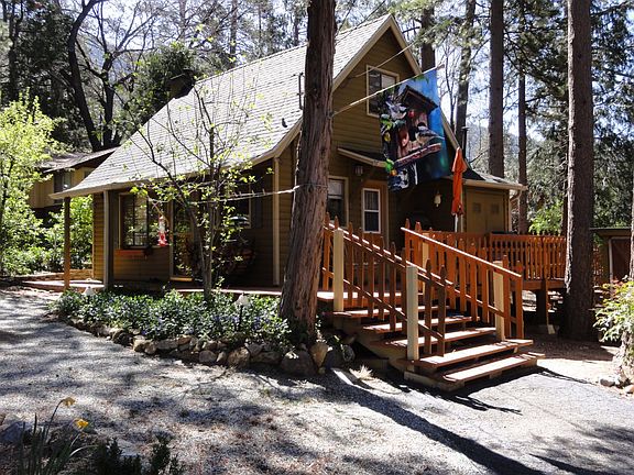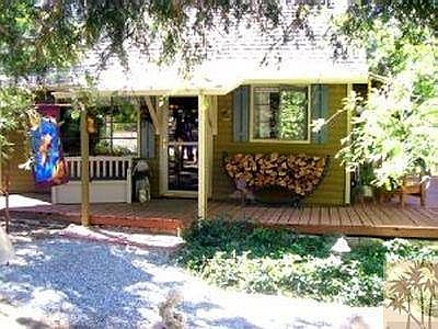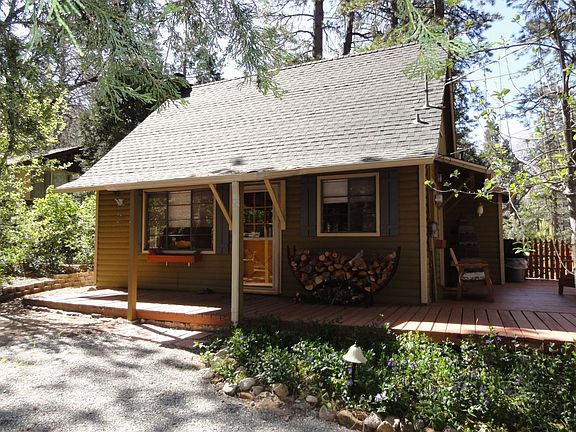 Cottage charmer close enough to walk to town. Cute and practical with huge master bedroom with door to the deck, large living room with airtight wood stove, upgraded bath with stacking washer/dryer, dutch door, exposed beam ceiling, kitchen open to living and dining area. One car detached garage and a garden shed. This is the picture perfect mountain cabin that would also work well as a full time house.