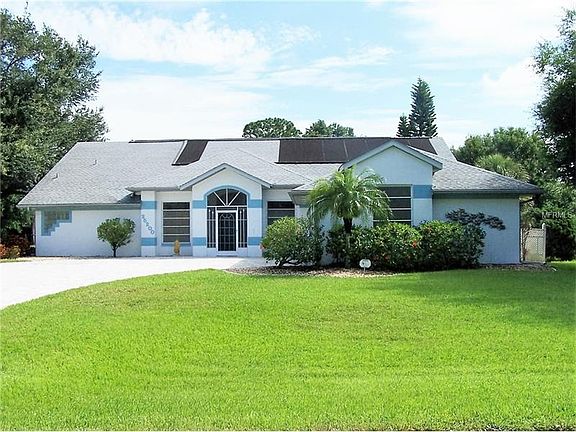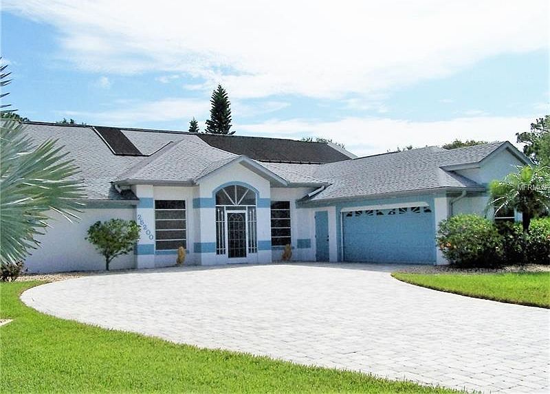 Exquisite Executive-Style Residence Situated On A Large Parcel. Immaculate Condition! Harborside Woods! Privacy abounds on over a 1/2 acre perfect for entertaining with a Huge Lanai and Pool! A modern home boasting a chef-style kitchen integrated with a Great Room floor plan which overlooks the pool and beautiful back yard. High ceilings are the trade-mark of this home with two master suites, 3 full baths and 2.5 Car Garage! Attention to detail throughout including: oversize brick paver driveway, new exterior paint, sculpted pool deck, refinished pool with auto-pop-up cleaners, French doors and updated appliances. The kitchen has a breakfast nook, secretary, pantry, breakfast bar and tons of storage! A custom built home with many architectural features! The grounds are simply gorgeous with mature trees- Bismark & Pineapple Palms, concrete curbing, well h20 irrigation, fenced yard, security monitoring and storage closet. Extra features include, summer kitchen; Jenn-aire, fridge/freezer & water, newer energy eff. pool pump, solar heated pool, office built-ins, huge master closet, plant shelves, side entry garage and work benches/garage cabinetry. Large laundry with sink & cabinetry, gorgeous dining room, lots of closets, double sinks- all bathrooms, lanai plus additional porch area. This home is located in a secluded neighborhood but close to Punta Gorda and convenient to Cape Coral and Ft. Myers. For the boater, the marina is right down the street!