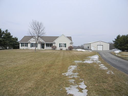 This property has it all! Large ranch home with over 2,200 sq. ft. and attached 3 car garage. Fireplace in living room, 1st floor laundry, and dinette has patio doors to deck with great views. All sited on 3 acres with 62 x 36 outbuilding for all the toys and a 15 x 30 building attached to outbuilding.
