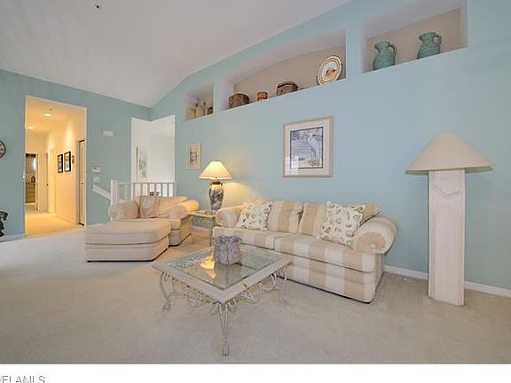 Beautiful second floor Coach Home, in one of the most desirable neighborhoods in Pelican Landing. The open floor plan features vaulted ceilings and plenty of sleep and entertainment options. Pelican Landing offers an array of amenities, from the three manned gate entrances, to the huge private beach park with shuttle service from the Hyatt.
