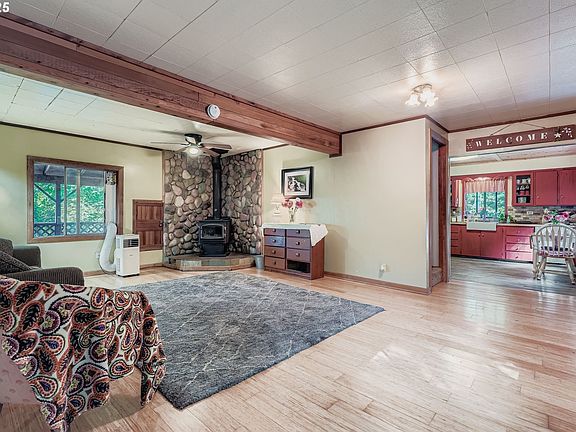 Close in country living! This farmhouse has lots of charm and character. Rustic wood beam ceiling, large living room with wood stove, laminate floors, spacious kitchen and all appliances included. Wrap deck and front porch with a swing. Large covered deck off primary bedroom. You'll love this land, as it's just shy of 7 mostly flat acres. Very private with a treed canopy. Little trail through your woods to a private pond. Free eggs! Chicken coops with chickens can stay! Well and Septic. Septic just inspected. Just outside of Hockenson but lower taxes in Battle Ground. Come see this one today!