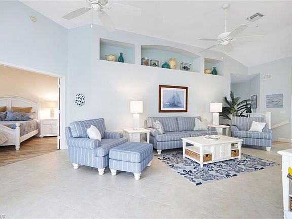 Private creek view from the 2nd floor. Move-in ready with turnkey furnishings that speak to a coastal vibe. Fully pocketing sliding glass doors open the interior space to the outdoors where you can spread out on your extra large lanai to let the birds and turtles entertain you. A spacious split bedroom floorplan with almost 1900 sq ft offering 3 bedrooms plus a den. French doors to den allow privacy for additional overnight guests. Updates throughout with granite countertops, stainless steel appliances, new bath fixtures, 20-inch tile on the diagonal, luxury vinyl flooring in bedrooms, 4-inch plantation shutters, newer roof and exterior paint, AC 2020, tankless hot water heater. Creekside Crossing is an enclave of coach homes offering two community pools, spa, and grilling station. The master-planned community of Pelican Landing is a 2,400 acres oasis of preserve land with miles of walking and biking trails. Amenities INCLUDED in the Master HOA fee: Beach club on private island accessible by resident-only boat shuttle, expansive fitness facility, professional tennis center with 12 Har-Tru courts and 6 pickleball courts, Hobie Cat sailing center, kayak & canoe parks, butterfly garden, and community center with social events. Golf and Sport/Social memberships at The Nest are optional. A beautiful condo in one of the area’s most desirable communities.