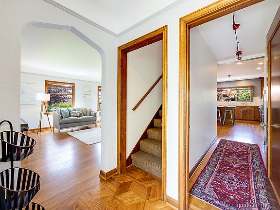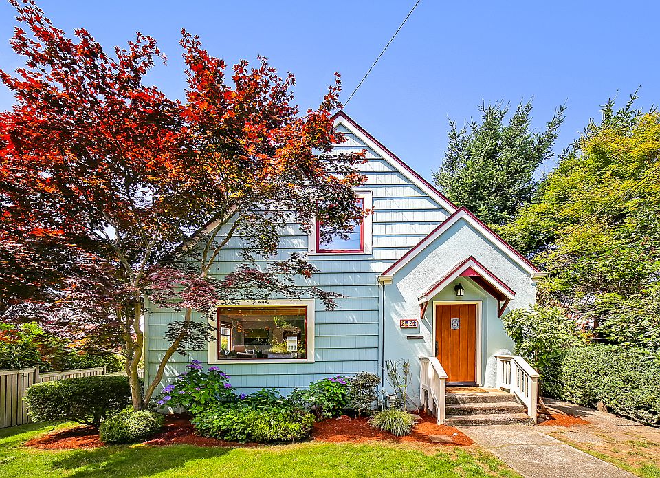 Charm abounds in this gorgeous Tudor, just blocks to Magnolia Village. Striking & spacious livingroom radiates warmth w/coved ceilings, mahogany moldings & focal point fplc. Beatiful kitchen, anchored by a full wall of cabs, large work island, & Viking & Miele appliances. Formal dining off of kitchen w/access to sunny deck. Rare, 3BRs up + updated 5pc BA & views to the Sound. Lower level w/ rec rm, bed rm, 3/4 bath, and ADU potential. Lots of patio/yard space & det?d garage w/alley access.