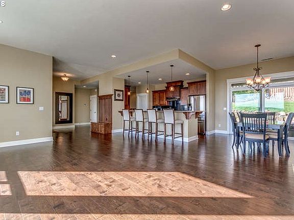 VIEWS CLEAR TO CROWN POINT! Mt Hood, Col River, City Lights from open Grt Rm w/ 10ft ceilings. Slab granite, 5 burner gas cook-top, walk-in pantry, conv wall oven, SS appl. Hand scraped hickory hdwd flrs, ledge stone gas firepl, Mstr w/ sep toilet rm, 2 sinks + 2 guest bdrms on main flr. Fenced yard, cov'd patio. Set up for potential sep living on lower level w/ Fam Rm, Bdrm, full bath, sep entry & views. Huge oversized gar, shop area.