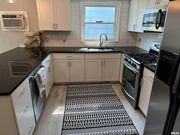 Back on the market due to buyer. November 2024 whole house inspection available. Welcome to this beautifully remodeled home centrally located in the city of Bettendorf. The main floor offers a bright open floor plan with a kitchen/dining/living room combination. In the kitchen you will find stainless steel appliances, a large breakfast bar and solid surface countertops. There are three bedrooms and a full bath on the main floor and a large unfinished basement. Central air condition was installed in 2021 and one wall a/c unit remains in the living area. There is a level back yard with parking slabs off the alley and street parking in the front. Buyer and buyer's agent to verify measurements, taxes and school district information.
