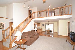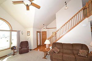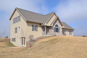 SLINGER SCHOOLS! Open concept home on large country subdivision lot w/fully exp basement rough plump for ba. Liv rm has towering ceilings & natural f/p that sports flr to ceiling stone. Custom cabinets & HWF's in kit. First flr laundry, 1st flr master w/HUGE walk in closet & private ba, a HUGE 2nd flr loft/den overlooking great rm along w/2 large bds & second full bath. solid 6 panel doors, 25x34 heated garage, stunning views, SPOTLESS condition. Go ahead & build your 1500 secondary garage!