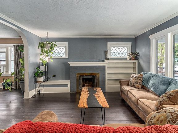 Cute Vintage 1910 Bungalow in the heart of Spokane. This delightful property offers a perfect blend of comfort, convenience, and style. Well maintained and updated throughout. Hardwood bamboo floors, quartz countertops, stainless steel appliances, Fully repaired chimney in 2021, whole house painted in 2021, tile kitchen floors, new furnace in 2017, sprinkler system front and back, whole home water filtration system, triple osmosis drinking water faucet, waterproof vinyl flooring installed in two bedrooms, and the laundry room. 3 large bedrooms w/deep closets. Pretty Fireplace in LR w/ leaded glass & built-in shelves. Large dining room w/pretty chandelier. MAIN FLOOR UTILITIES. Fenced backyard w/ patio and a lighted gazebo and hut tub. Plus lets not forget the warm and inviting front porch! Near St. Patrick's Church & others. Ready to move into. Plus the buyer is offering a 1-year Home Warranty.