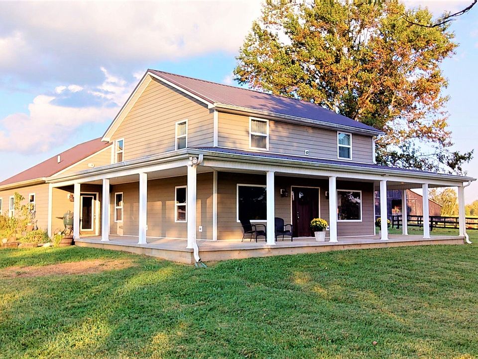 You won't believe all that this 53+ acre farm in Fayette County has to offer! Driving up the private driveway to a gated entrance you will find a charming farmhouse that has been lovingly remodeled with attention to detail. Custom finishes blend the old with the new seamlessly. You have all the modern conveniences of a chefs kitchen, a wonderful first floor primary suite, recessed entertainment center and more with the charm of an old farm house with it's wrap around porch, hardwood floors and antique hardware throughout. Past the house is a lighted 235x132 sand arena an 8 stall barn with room for more and several smaller paddocks convenient for turn out of your horses. Towards the back of the property are two more barns, one currently used for equipment storage and one used for hay storage. Certainly potential for adding more stables if needed. There are 4 larger field that can be used for hay. The back field has banks and cross country jumps that the seller will consider conveying with the property. There are four automatic Varnan Waterers on the property as well as three ponds. Don't miss the opportunity to own this beautiful piece of Fayette County! Don't miss the virtual tour!