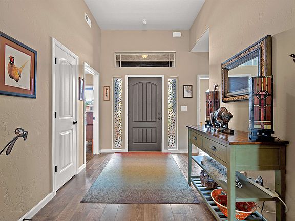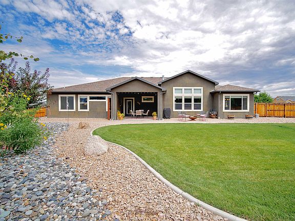 Welcome to your dream home in the picturesque Greystone Estates! This charming 2,195 sq. ft. ranch-style residence sits on over an acre of land, offering the perfect blend of luxury and functionality. With 4 spacious bedrooms and 2 well-appointed bathrooms, this home is designed for both comfort and convenience. The open, flowing main floor plan is ideal for entertaining, featuring a cozy gas fireplace that adds warmth to the living area. The large kitchen is a chef’s delight, boasting stainless steel appliances, granite countertops, and a generous dining space perfect for gatherings. The master suite is a serene retreat, complete with a 5-piece bath featuring a garden tub, a custom-tiled walk-in shower, and a spacious walk-in closet. Enjoy seamless indoor-outdoor living with direct access to the covered patio from both the main living area and the master suite; featuring gorgeous views of the Colorado National Monument from the back porch and the Book Cliffs from the front porch. The oversized 3-car garage offers ample storage space for your vehicles and toys. The property is landscaped with irrigation systems in both the front and back yards, with a fully fenced backyard. Currently, the back third of the lot serves as storage for a RV, but holds potential for more. Zoned to allow for some agricultural use with plenty of room in the back area for a barn and/or small pasture. Embrace the serene lifestyle of Greystone Estates while enjoying the versatility and beauty of this exceptional home!