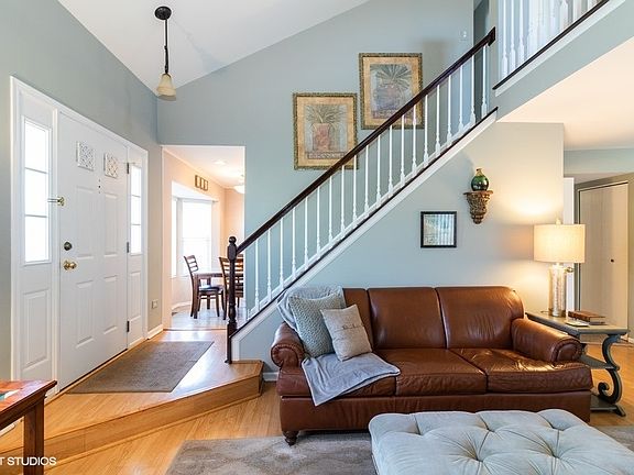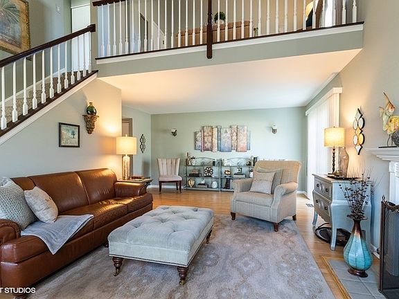 This wonderfully updated and maintained home is ready to just move in and enjoy. Decor is both modern and neutral. The eat in kitchen includes a table area with bay window, recessed lighting, grey cabinetry, Corian counter tops and upgraded LG stainless steel appliances. The two story living room has a gas fireplace with gas logs, tile surround, mantle and wood floors. The dining room has wood flooring and a sliding glass door to the patio. The loft overlooks the living room and has a volume ceiling, closet, a large window for light and wall lights too. The master bedroom has a ceiling fan and sculpted carpet as does the entire upper level. The bathroom has a separate shower and deep soaker tub. Laundry on 2nd level. Huge bonus is the full unfinished basement! Don't miss out!