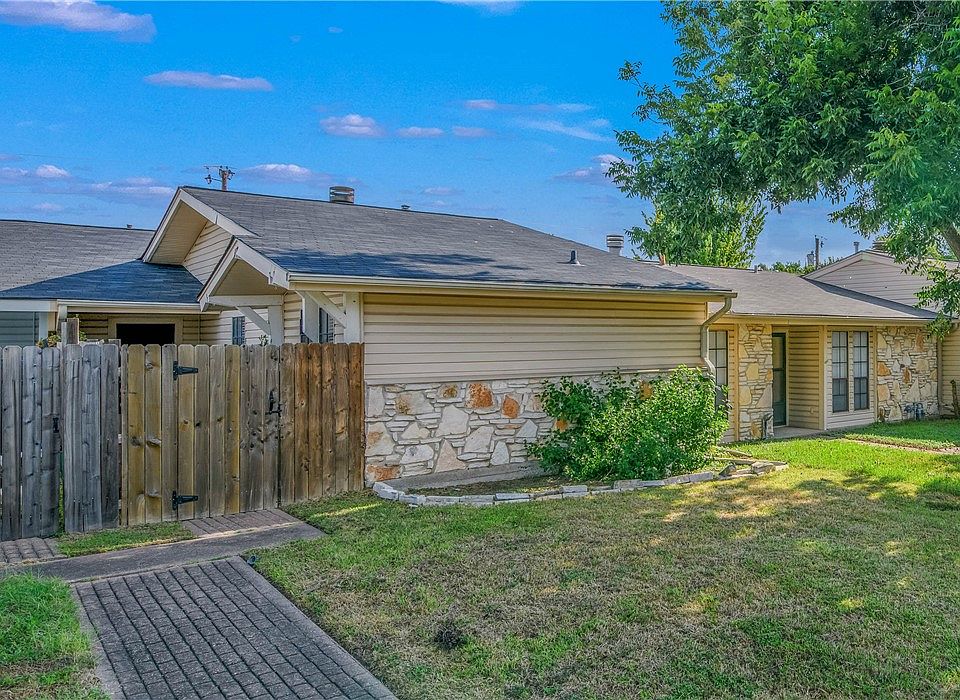 Discover this hidden gem located just off Longmire Drive in College Station. This 2-bedroom, 1-bath, 1-car garage townhome offers low-maintenance living with no HOA dues. The open living area is enhanced by vaulted ceilings, a gas-start fireplace, and large windows that fill the space with natural light and overlook the private side patio. The kitchen has been tastefully updated with quartz countertops, modern cabinetry, and stainless appliances, creating both style and function. Both bedrooms are generously sized with well-appointed closets, and the bathroom is clean and well-maintained. The private patio area provides an inviting outdoor retreat. Centrally located near restaurants, shopping, hospitals, schools, and Highway 6, this property is a great fit for first-time buyers, investors, or anyone looking for convenience and comfort in the heart of College Station.