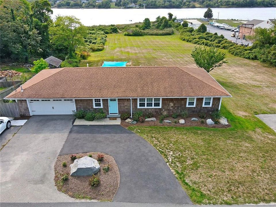 Waterfront home on Nanaquaket with almost 3 acres of land. This property, known as Coastal Charm on Airbnb and VRBO, currently has 5 star reviews. It is tastefully decorated and provides all the necessities for guests to have a wonderful stay. It's turn key, immaculate, and fully furnished with all new appliances including washer and dryer. The deck provides a view of stunning sunsets. This coastal themed home has 200 ft of shoreline and a mooring. Beautiful hardwood floors throughout, brand new kitchen with quartz countertops and stainless appliances including a gas stove. New high efficiency propane furnace, rinnai on demand hot water, central air and electrical. New septic installed in 2019. Attached two car garage, walk out lower level, large backyard and walkway leading to the water. (By appointment only. Please do not walk the property as this home is occupied.)