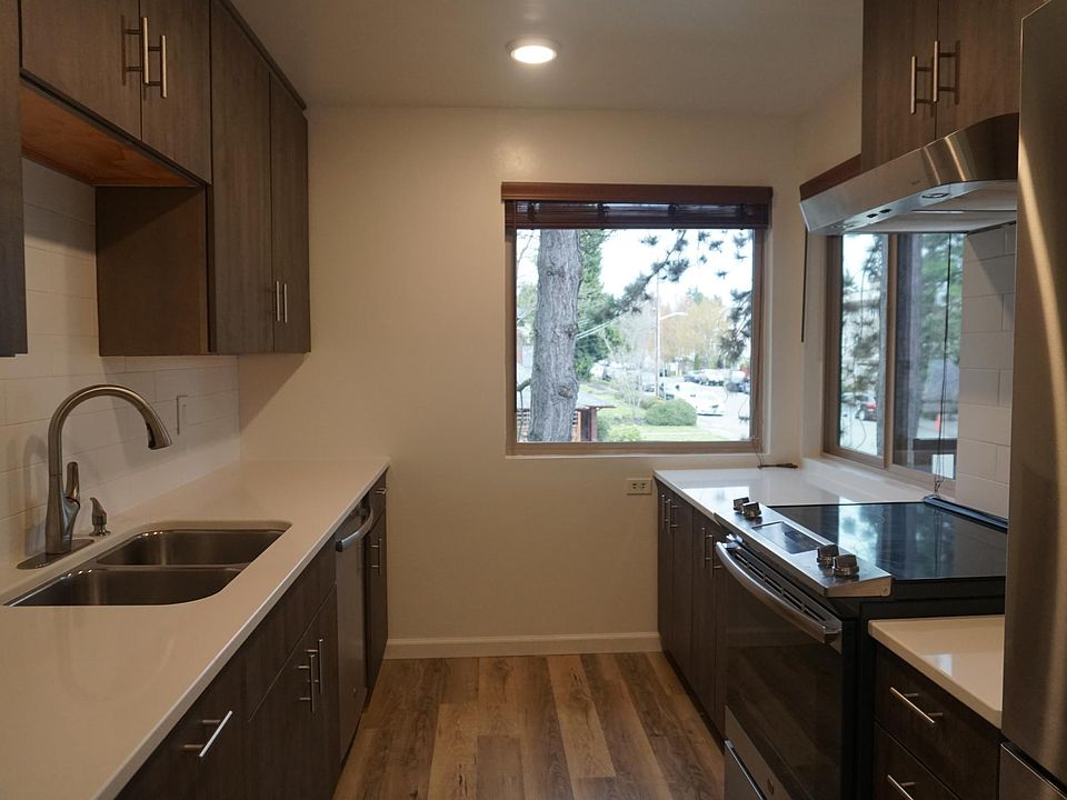 Modern and renovated 3bd/1ba top floor apartment located just blocks away from the heart of Lake City s commercial area. Close to restaurants, bars, supermarkets, and parks. Fast and convenient commute to UW, Northgate, or Downtown via the many bus lines serving Lake City or by quick access to I-5. New stainless steel appliances including dishwasher, large refrigerator, and range/oven. Unit includes a covered balcony, wood fireplace, private secured storage, and enough off-street parking for two cars end-to-end. The unit is available May 1st, 12 Month Lease. First month s rent, security deposit, and pet deposit/cleaning fee (if applicable) due on signing. Smoking permitted on balcony. Non refundable application/screening fee of $45/person. Landlord pays water, sewage, and gas. Up to two cats allowed with additional rent of $40/per cat. Owner pays water, sewer, and garbage. Tenant pays electricity and gas.