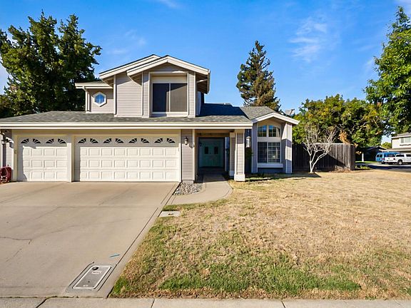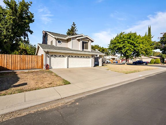 This beautiful custom built two story home located in the highly sought after Stonegate Manor neighborhood. Offering 4 spacious bedrooms 2.5 bathrooms and over 2,138 sqft. of living space, this home perfectly blends comfort, function, and style. Situated on a 10,000 sqft. corner lot, you'll enjoy RV/boat access, a built in swimming pool and spa, and plenty of outdoor space ideal for entertaining or starting your dream garden. Step inside to discover an open concept kitchen featuring granite countertops, recessed lighting, double ovens, an induction cooktop, and a cozy breakfast nook. Luxury vinyl plank flooring offering a modern and low maintenance touch. The inviting family room boasts a wood-burning fireplace with gas starter, creating the perfect ambiance for relaxing evenings. Upstairs, the primary suite showcasing vaulted ceilings, a walk in closet, and a spa like ensuite bathroom with a sunken tub, tiled shower, and dual vanity. The hall bathroom also includes double sinks and a shower/tub combo. Located in the highly regarded Lakewood Elementary School District, this home provides both elegance and convenience in one of Modesto's most desirable neighborhoods.