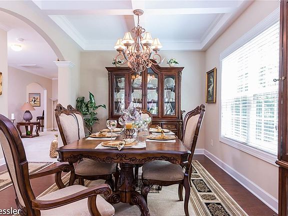 Lovely, spacious home features beautiful stone, quaint front porch, open plan and abundant storage. Located minutes from I-40/85 and Saxapahaw; easy commute to Chapel Hill. This home has beautiful details including coffered and tray ceilings, large pantry, built-in desk, lots of closet space, gas logs and spacious patio for entertaining. Kitchen features a gas range, large island, granite countertops, tile backsplash, generous cabinetry and oversized pantry. Primary suite has a tray ceiling, separate tub and shower with walk-in double closets. The large fifth bedroom would make a great guest suite, media room or private office. Storage shed, washer, dryer and refrigerator remain.