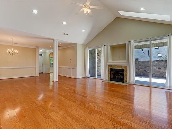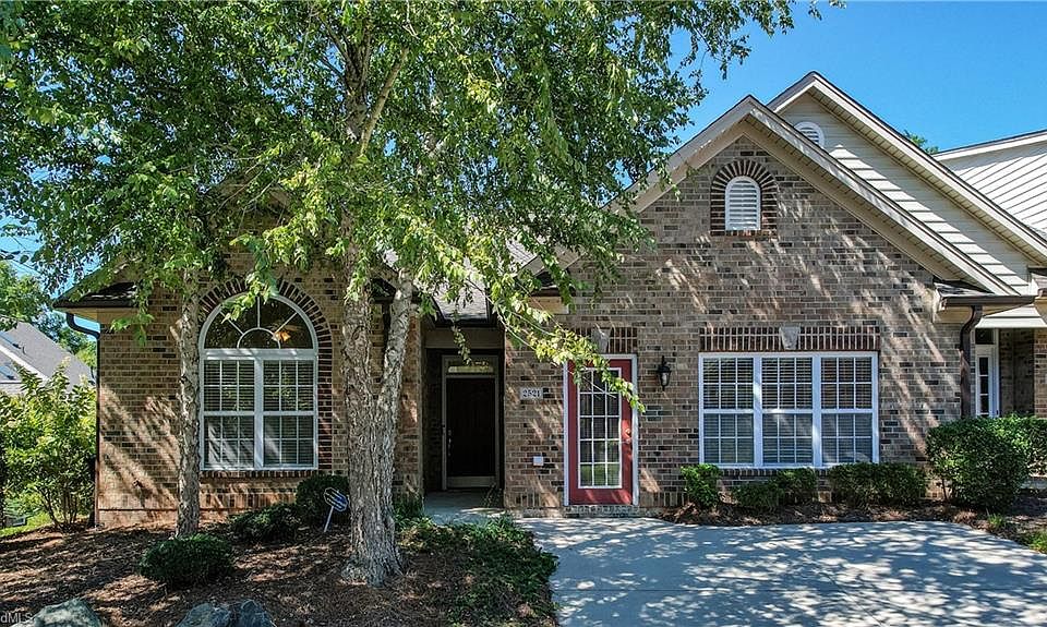 Former model home in Woods at Grove Park! This all-brick, single-level townhome offers 3 bedrooms and 2 full baths in a split-bedroom floor plan. Freshly painted and move-in ready, the home features 9-ft ceilings, hardwood floors, and a vaulted living room with gas-log fireplace. The huge primary suite boasts a tray ceiling, walk-in closet, and spa-like bath with dual vanities, soaking tub, and separate shower. Two guest rooms share a well-appointed bath with accessible sink and grab bars. Expansive bonus room provides endless options! Enjoy a private partially covered, fenced patio plus expansive shared green space in rear of home. Exceptional storage and natural light throughout. Community amenities include pool and clubhouse, all in a convenient location close to shopping, dining and major roadways.