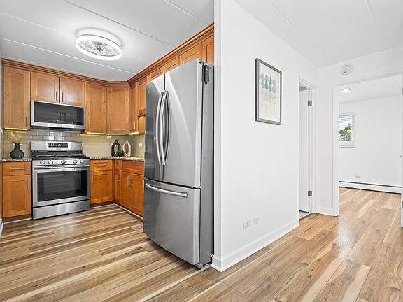 This impeccably maintained, clean and tastefully updated condo features fresh paint throughout as well as gorgeous, high-quality flooring. Kitchen features stainless steel appliances and tall, ceiling-height kitchen cabinets that maximize storage space and create a sleek, seamless look. Truly move-in ready with nothing left to do! Enjoy the convenience of assigned parking, in-building laundry, and an included storage unit. Low monthly assessment fee includes heat and more. Convenient location with easy access to the train station, highways, and a variety of stores and restaurants. Rentals are not allowed. Don't miss this opportunity to own a stunning condo in a well-kept building!