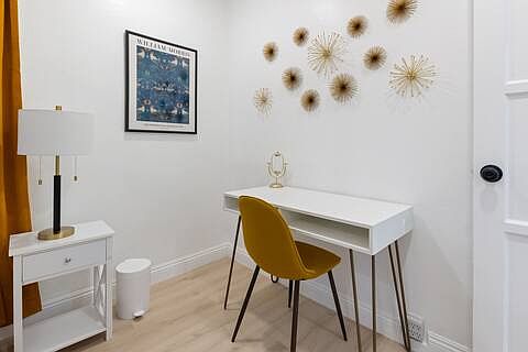 Simply open the white gate and park in front of the house. This home allows for 1 car spot on site directly in front of your patio. Ample and safe street parking is also readily available.