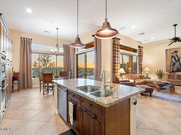 Welcome to your dream home in the prestigious Anthem Country Club! This stunning 4-bedroom, 3.5-bathroom Sonoma model sits on an elevated lot, offering sweeping views of the 17th hole of the Persimmon Golf Course, lush desert, majestic mountains, and twinkling evening lights. The spacious 3,290 sq ft layout includes a versatile den and a 3-car garage, all set on a serene 0.254-acre lot. Inside, a gourmet kitchen awaits with gleaming granite countertops, stainless steel appliances, and rich dark wood cabinetry. The open-concept layout flows seamlessly into the cozy family room and dining spaces, perfect for entertaining or simply enjoying the view. The owner's suite is a true retreat, featuring a luxurious tile walk-in shower and ample space for relaxation. Step...CONTINUE READING... ...outside to the backyard oasis where you'll find an expansive patio with an outdoor BBQ/bar area under a pergolaideal for al fresco dining. Unwind in the negative edge spool, heating up to 104°, with a tranquil cascading water feature. Whether you're soaking in the vibrant sunsets or hosting friends, this low-maintenance, meticulously landscaped yard offers the best of Arizona outdoor living. Experience resort-style elegance every day in this breathtaking Anthem Country Club home!