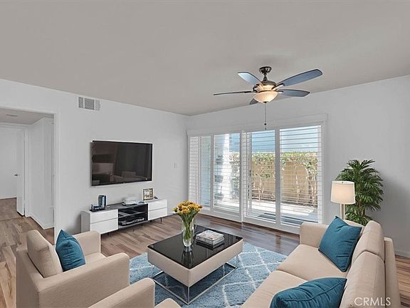 The unit includes one assigned carport parking space located close to the condo. Community amenities include gated entry with remote access and security patrol, ample guest parking, landscaped greenbelts, mature trees, and walking paths. Multiple swimming pools and a clubhouse are currently under renovation. Additional amenities include a spa with picnic area, carport storage lockers, and an on-site laundry facility near the unit. HOA dues include water, trash, and exterior maintenance. The community maintains active resident involvement and neighborhood watch programs in coordination with the Santa Ana Police Department.