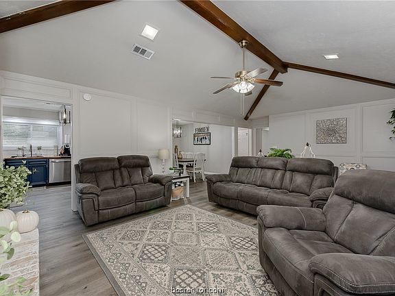 Welcome home!! This property is perfect for those who love to entertain or simply enjoy spacious living. If cooking is your passion, then this kitchen is for you! It boasts a down draft exhaust fan on the cooktop, ensuring that your culinary adventures are smoke-free. The abundance of cabinets provides ample storage space, while the pantry ensures that all your ingredients are within easy reach. Off the kitchen is the spacious living room w/ wood beams accenting the vaulted ceiling & a wood burning fireplace. The master bedroom is spacious and features an updated ensuite bathroom with separate vanities & two walk-in closets. Outside, the house sits on a generous corner lot, offering privacy and plenty of outdoor space. Whether you want to relax on the patio while grilling or create a beautiful garden oasis, the options are endless. In addition to these incredible features, this property comes w/ a filtered water system, solar screens for energy efficiency, new appliances including a fridge, dishwasher, & cooktop, as well as new light fixtures, vinyl plank flooring & new interior and exterior paint. Located in a desirable neighborhood, this house is conveniently situated near Blinn College, local amenities and parks. Its five parking spaces, including additional parking beside the garage, ensure that there is plenty of room for vehicles. To top it off, the house boasts a new roof(2021) and new HVAC (2021), ensuring peace of mind for years to come.