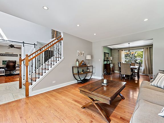 This amazing, updated home is conveniently located on a cul-de-sac, near downtown, in Walker's Grove in North Plainfield! This ultra-modern & charming home starts with gingerbread front trim & a porch, opens into the Pottery Barn-style, updated interior, and ends with the covered paver patio in the oasis-like yard! The newer entry door leads to the foyer with wrought iron spindles on the railings and barn doors to the 1st floor office. Newer custom kitchen has 42" off-white cabinets, porcelain farm sink, quartz counters, center island, and a designer tile back splash! All newer stainless steel appliances are included. Sliding glass doors in breakfast room bring you to the oversized covered paver patio! The bright, vaulted family room features a brick two-story gas fireplace. Entertaining is great with the formal living and dining room! New mudroom with cabinets, counter and built-in sink is perfect for parties! Room for everyone in the 5 bedrooms and 3 full updated bathrooms on the second floor! Owner's suite has a tray ceiling, walk-in closet, and private bathroom! This awesome bathroom is complete with a marble double-sink vanity, porcelain floors, a WET room with soaker tub, shower with rain-head and wand! The large second floor laundry has a wall of upper cabinets and countertop for folding. More fun to be had in the basement with rec room, built-in bar, game room, craft room, and 1/2 bath. There is roughed-in plumbing for a shower, too. The 3.5 car heated garage has custom built-in cabinets in the storage or workshop room and a service door to the yard! The gorgeous, fenced yard has two more paver patios and beautiful landscaping to enjoy! Newer roof, furnace, central air conditioner and hot water heater. Great location, only a few blocks to the elementary school and park, near shopping and expressway! This is a great place to call HOME!