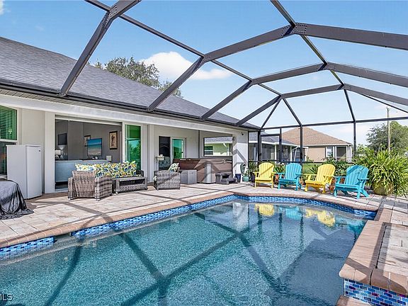STUNNING CURB APPEAL! LIKE BRAND NEW! BUILT IN 2021 3 BEDROOM, 2 BATH, 2-CAR GARAGE POOL HOME in the deed-restricted community of Burnt Store Village. Step inside where you will find an open floor plan with contemporary décor and lighting, tray ceilings, and ceramic tile throughout. The kitchen offers white raised panel cabinetry complimented by quartz countertops, tile backsplash, stainless steel appliances and large island great for entertaining. Generous primary suite features ample natural light, access to lanai/pool, his and her walk-in closets and private en-suite bath featuring dual sinks, freestanding tub, and walk-in tile shower. Split floor plan provides privacy for guests with two additional bedrooms and separate full bath. Outside enjoy the screened lanai with the saltwater heated pool overlooking the private backyard with greenbelt views. Additional features include a laundry room, hurricane impact windows and doors, irrigation system, hot tub, sun shelf in pool and beautiful lush landscaping. The location of this property is unbeatable, just 20 minutes from downtown Punta Gorda and 30 minutes from downtown Fort Myers. Additionally, it's close to the relaxed waterfront community of Burnt Store Marina, offering access to resort and golfing facilities, waterfront dining, and entertainment. It is conveniently located to the airport, restaurants, shopping, beaches, and award-winning fishing and boating. Don't miss out on this opportunity! Schedule your private showing today!
