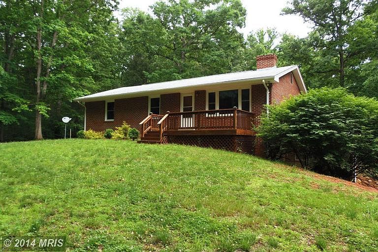You'll love this setting! Tall hardwoods & stream on 9+ acres, private setting for this updated brick rancher on full finished basement PLUS a large workshop/garage! New heat pump, New roof, New windows, Bathrooms remodeled to include stylish tile work, gleaming hardwood floors throughout, Fireplace in LR, woodstove in bsmt., possible 4th BR in bsmt., Kit area & sunroom. Division potential.