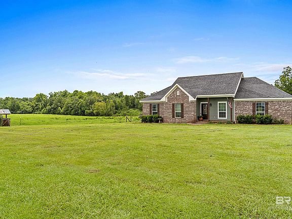Just a few minutes drive from downtown Elberta, this Home will check all the boxes for Rural Living! 4 acres, Storage Building, Enclosed Boat Shelter, Lean-To for Outdoor Equipment, and a BEAUTIFUL 3 bedroom, 2 bath Home with all the modern touches! Enter to find the Great Room with Brick Accent Wall, Vaulted Ceiling and Luxury Vinyl Plank Floors. The County style Kitchen includes an Island Bar, Granite Counters, Gas Range, Custom Hood, Backsplash, Stainless Steel Appliances and a Walk-In Pantry! Primary Bedroom is warm and inviting with an Ensuite Bath including Double Vanity, Granite Counters, Tile floors, and a Walk-In Shower with Rainfall Shower Head! Off of the living room you will find the perfect Flex Space with lots of extra storage and cabinets! Don't forget the Covered Back Porch and extended deck with above ground Pool. A short drive to Foley, Orange Beach, Gulf Shores, and Pensacola. Don't wait! This is a must see! Buyer to verify all information during due diligence.