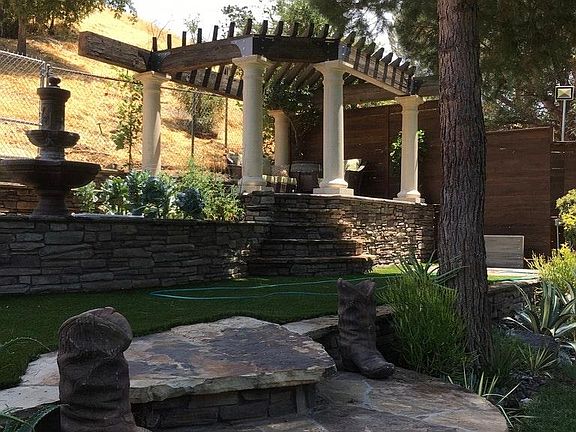 3 bed/ 2 bath $4,000 12 month min lease. This is a three bedroom two bath freestanding house with Spa/ jacuzzi and enormous backyard and a hill behind you with Gardner and water included. Master bedroom has vaulted ceilings with sliding glass door to backyard and attached office and its' master bath has dual shower heads in large shower, living room also has vaulted ceilings, in kitchen there's stove/oven, microwave, dishwasher granite, window nooks. Laundry room with additional storage and cabinetry. Each bedroom has its own closet door. Backyard has Jacuzzi, covered backyard patio, vegetable growing area, tall, redwood, fencing. Brand new roof that's four months old, brand new exterior paint. That's four months old, new interior paint once Tenant moves out in two weeks, Brock 661-8zero3-0466 Owner pays water and Gardner, all other utilities are done by tenants. 12 month min lease.