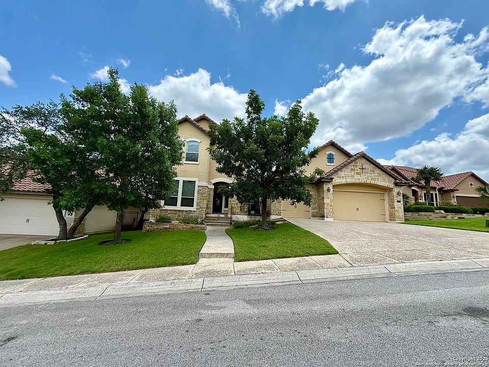 FORMER MONTICELLO MODEL Elegant 4-Bedroom Home with Gourmet Kitchen & Game Room in Sought-After Community This beautifully designed home showcases a classic tile roof, stone and stucco exterior, and a spacious 3-car garage. The 4-bedroom, 3-bath layout offers generous living space, high ceilings with custom treatments, and refined crown molding throughout. The luxurious primary suite features a spa-inspired bathroom complete with a jetted soaking tub, walk-in shower, and dual vanities. The gourmet island kitchen, a chef's dream, is equipped with granite countertops, stainless steel appliances, and a cozy breakfast area. Perfect for entertaining or relaxing with family, the large upstairs game room offers endless possibilities. Located in a vibrant neighborhood with a top-tier recreation center featuring a sparkling pool and tennis courts, this home has it all!