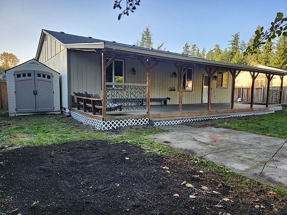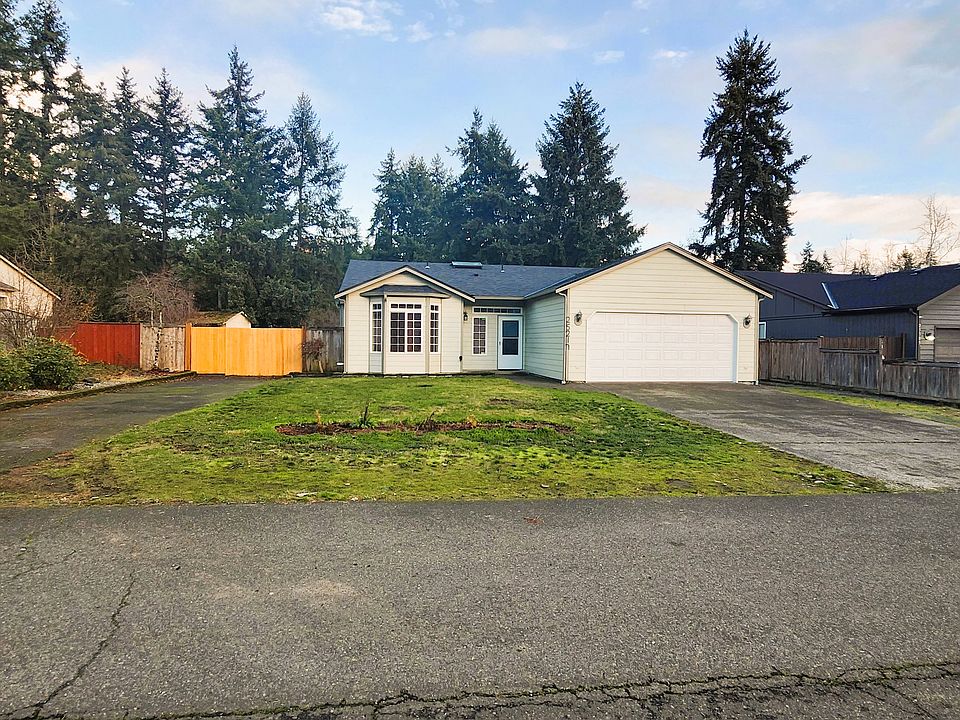 Experience a slice of country living with a warm cabin feel in this custom remodeled home, which includes 3 bedrooms, 2 baths, a 2-car garage, and a 12x42 covered deck that provides privacy and relaxation. Skylights provide ample natural light, while the real pine wrapped doors and trim give this home a unique ambience. A fully fenced yard that backs up to a green belt and an RV/extra parking paved driveway further complement this amazing property. There is extra shelving in the garage and plenty of storage throughout. Joint Base Lewis-McChord, shopping and other amenities are close by. There is much more to see in this charming home, you won't be disappointed!