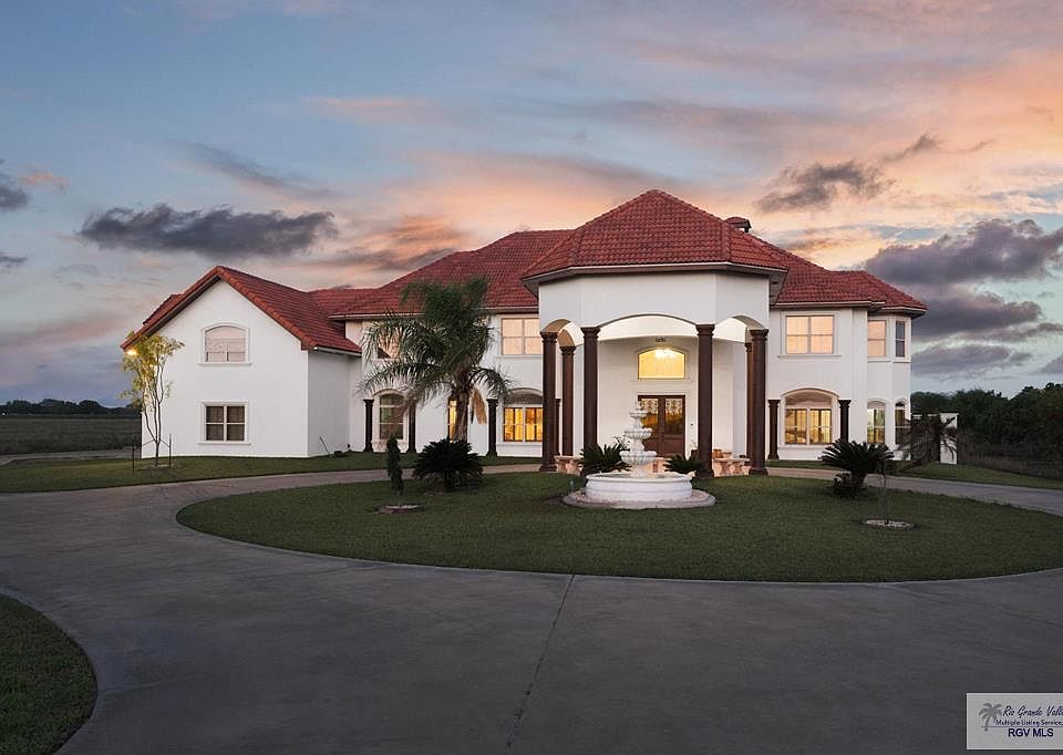 Discover a custom-built estate set on 5 acres, offering both elegance and privacy. This home features a chef's kitchen with a walk-in pantry, center island, custom cabinetry, and granite countertops throughout. The main living spaces showcase travertine flooring, a formal living room, and a dramatic spiral staircase. The primary suite provides a true retreat with a sitting area, dual vanities, jacuzzi tub, and spacious walk-in closet. Two secondary bedrooms are joined by a jack-and-jill bath, while a fourth bedroom includes its own private bath. A huge upstairs game room offers endless possibilities for recreation or media and has its own half bath. Outdoor living is highlighted by a covered patio overlooking a sparkling pool with waterfall, creating an ideal setting for entertaining or quiet evenings. Built with concrete exterior walls, this home delivers both durability and energy efficiency, while the expansive grounds offer a beautiful backdrop for gatherings or special occasions.