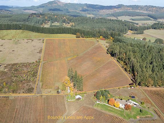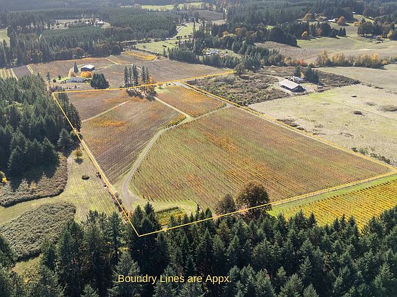 This productive vineyard known as Union School Vineyard, is located within Oregon’s Willamette Valley and Lower Long Tom AVAs, encompassing approximately 19.96 total acres, with 17 acres under vine. The site is planted on Bellpine Silty Clay Loam, a high-value soil series known for excellent drainage and ideal vine balance.Plantings include 15 acres Pinot Noir (clones Pommard, 777, 115, and Wadenswil), 1 acre Sauvignon Blanc, 0.5 acre Riesling, 0.5 acre Chenin Blanc. All vines are on phylloxera-resistant rootstock, trained on a VSP trellis system, with 5’ x 7’ spacing (1,250 vines per acre). The vineyard has been professionally managed and consistently produces high-quality fruit suitable for premium wine programs.Additional site features include a potential building area, landscaped perimeters, a garden, and established fruit trees (apple, pear, plum, persimmon). Well, septic, and electrical service are already installed. Buyer to conduct due diligence regarding a replacement dwelling permit, winery or tasting room.This property offers an excellent opportunity for an established producer or investor seeking a proven vineyard asset in the desirable Willamette Valley and Lower Long Tom AVA.