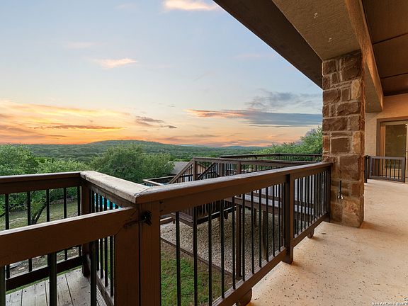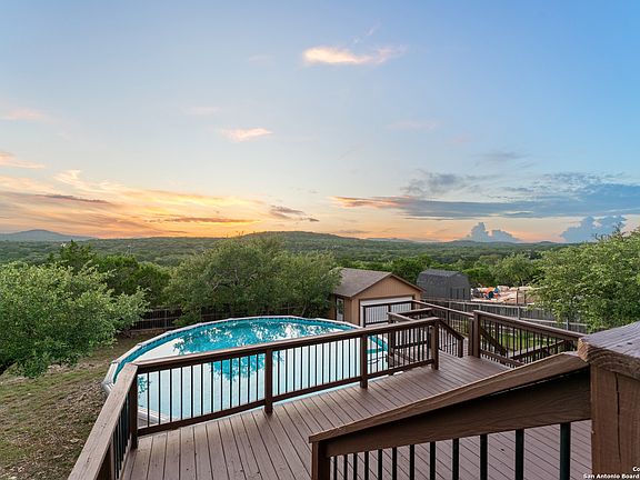 Welcome to Timberwood Park. Some of the Best Views in the City!! A gorgeous custom home showcasing many beautiful features including: a grand wall of windows in the living room for breathtaking and unobstructed hill country views, stone electric fireplace, chefs kitchen with custom cabinetry and pristine granite, heavy duty roof installed 2022, three-car side entry garage, .61 lot size, 20x20 JB Wolf custom shed with garage door, 400 sq ft custom stained tri-level wood deck, water softener system/whole house water filtration system, trane 16 seer HVAC unit, Rinnai tankless water heater, paid off solar panels for premium energy efficiency, 20 ft above ground pool, external shower outside for pets, covered patio with an additional covered balcony for spectacular sunsets, luxury wood like tile floors throughout the majority of downstairs, gas cooking, and a fully fenced backyard. The private master suite has access to the rear deck, a roomy closet, and a gorgeous bathroom suite. Enjoy all three spacious guest bedrooms, a large office, along with a huge game room/library upstairs with a private balcony. Timberwood Park HOA - 30-acre private park, junior Olympic swimming pool, 7-acre lake stocked w/fish, basketball, tennis, volleyball, and pickleball courts, 6-hole golf course, park, playground, jogging/walking trails, pavilion, and clubhouse. Come and see today. You will not be disappointed!