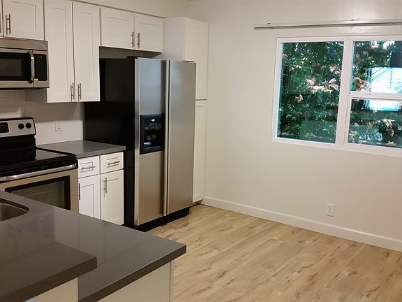 Remodeled Spacious 2 Bedroom 1 Bathroom has a Private Balcony and comes with new: Shaker white cabinets in the kitchen and bathrooms, Grey Quartz Counters , tile floors in the bathroom, stylish wood laminate floors in the living room & kitchen, carpet in bedrooms, new tub and wall tile, STAINLESS STEEL APPLIANCES (dishwasher, range & microwave), fixtures and SMOOTH CEILINGS throughout! Laundry room onsite. This unit also includes a 1 car automatic garage door parking spot (parking on street as well). Water, Trash & Gardening is paid for. SPECIAL: 1/2 OFF FIRST MONTHS RENT & we will include a STAINLESS STEEL FRIDGE! No pet policy. 1 Year Minimum Lease. View pics of similar remodel! Rent: $2195 Deposit: $800 The exterior is getting a fresh and modern make over with New: Windows, Doors, Exterior Siding, Copper Plumbing, Automatic Garage Doors & Landscaping!