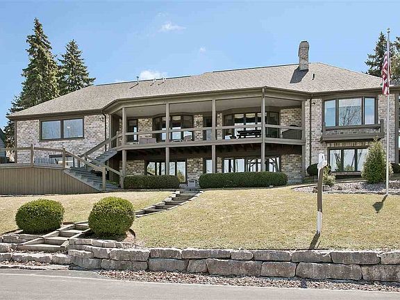 Enjoy views of the Fox River and Lambeau Field from one of three decks in the heart of Allouez. One owner, who's also the builder, didn't hold back in the superb craftsmanship. This extremely well built, all brick, walk out ranch home has soaring wood beam ceilings. Enjoy access to the Fox River Trail from your backyard, then stay toasty in front one of two wood burning fireplaces while viewing incredible sunsets all year long.