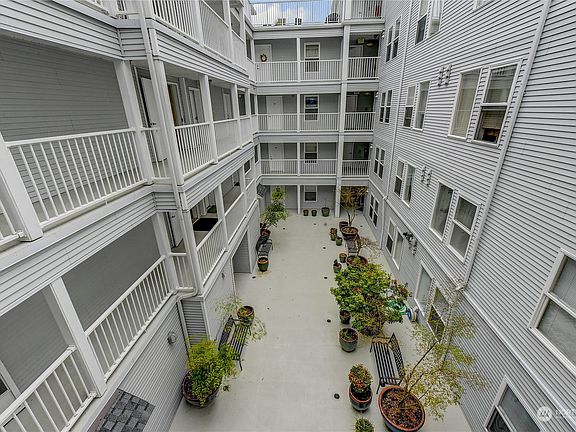 Location, location, The Bayside has a no stair secure entry with elevator to all floors. In the heart of Everett w/ partial views of shipyard, sound and close to downtown. Conveniently located close to Boeing, Navy station, hospitals and Public Market. This condo has been nicely updated w/ paint & flooring. Additional cabinets have been added to the kitchen, master bedroom & 2nd bdrm for additional storage. An additional storge area is off the lobby/1st garage floor (#10). There are two parking spaces #402-#402) in the lower garage with exit to alley rather than exiting on Rucker. A spacious rec/ exercise room is located on lobby floor & Rooftop BBQ area with views is available as well.