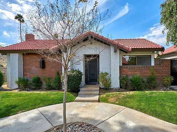 This beautifully renovated end-unit offers 2 bedrooms, 2 upgraded bathrooms an open floor plan with Majestic Mountain views. Kitchen is bright and features new cabinetry, new quartz tops, dishwasher, microwave and stove. The spacious Living Room features cathedral-beamed ceilings, brick gas fireplace. New flooring throughout. Floor-to-ceiling paneled windows and sliders lead to the patio. Attached 2 car garage for convenient access. Refreshing Pool & spa is conveniently close. Community features offers 7 pools/spas, lighted tennis courts, pickleball court and on site property management office. Great location just minutes from Palm Springs dining, shopping and entertainment district. One small pet ok with additional deposit.