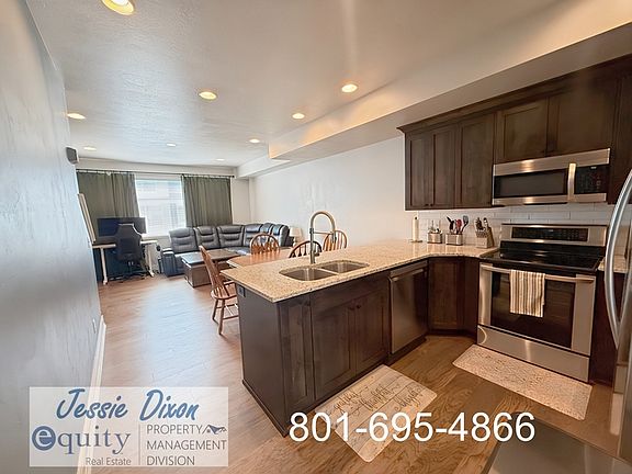Discover this upscale, like-new townhome in the heart of Laytonjust one block from the south gate of Hill Air Force Base. Enjoy quick access to I-15, Highway 193, and Highway 89, making any commute a breeze. Inside, the spacious great room flows into an open-concept kitchen and living area, perfect for relaxing or entertaining. The owner's suite features a walk-in closet and a roomy bathroom with stone countertops. A washer and dryer are included for added convenience. The extra-deep garage offers plenty of space, plus a large storage room for all your gear.