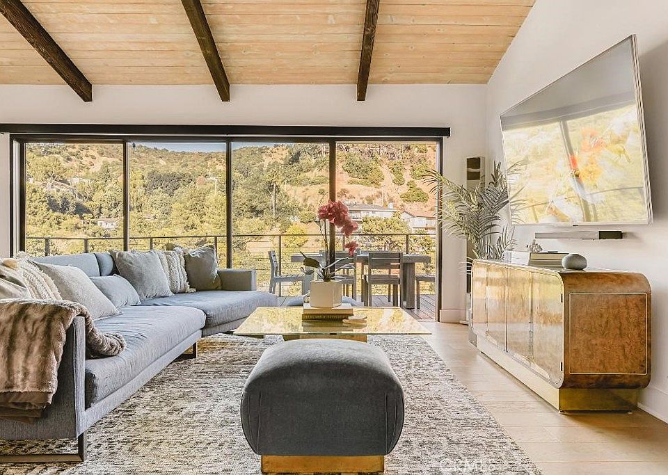 LOCATION LOCATION! LOOK at the PRICE! Incredible Street, Neighborhood - Surrounded by MULTI MILLION Dollar$ Homes, all the surrounding properties are $3M to $10M!!! Not your average LA Street, lots of parking for guests! Mid-Century Magic with Unreal Views + Seamless Indoor-Outdoor Living – Moments from Iconic Sunset Strip! Tucked in lower Nichols Canyon, just minutes from the Sunset Strip & West Hollywood’s finest dining, nightlife, and energy & trails, this mid-century modern retreat delivers timeless style, jaw-dropping views, & the kind of indoor-outdoor flow that defines LA living. Set behind a gated entry, the home opens to a spacious private front patio—rare, usable outdoor lounge perfect for slow mornings, sun-soaked workdays, or evening cocktails before heading out. This outdoor space connects effortlessly to the interior, setting the tone for a lifestyle rooted in openness, light, & flow. Inside, vaulted ceilings, exposed beams, & wide-plank flooring create an airy, architectural feel. Floor-to-ceiling sliding glass doors dissolve the boundary between inside & out, drawing you toward the upper view deck, where you’ll host unforgettable dinners, cocktails, easy al fresco dining & entertaining or laid-back sunset hangs w/canyon & twinkling city lights as your backdrop. Cook's kitchen is bright, stylish, featuring clean lines, top of the line stainless steel appliances, contemporary counters, & skylight that floods the space with natural light. The primary suite is your private retreat, w/oversized windows framing sweeping canyon views, built-in storage, & spa-like bath with a soaking tub, glass shower, and skylight—letting you shower under the stars. Each of the two additional bedrooms also offers uninterrupted canyon views, making them ideal for guests, a creative studio, or the perfect Work From Home setup. One features a charming fireplace. A second modern bathroom with sleek finishes completes the main level.