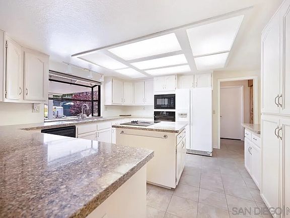 Tucked away on a peaceful 0.65-acre lot surrounded by mature trees and mountain views, this single-story retreat in Ramona’s sought after San Diego Country Estates offers the perfect blend of nature, space, and charm. A long private driveway winds through lush greenery, setting a tranquil tone as you arrive. Step inside to an open and versatile floor plan featuring elegant wood-look tile flooring and a spacious living room anchored by a timeless pass-through brick fireplace and custom wood built-in shelving—perfect for cozy evenings or effortless entertaining. The fireplace connects the living room to a dining and family room combination, creating a seamless flow through the heart of the home. The bright kitchen features crisp white cabinetry, granite countertops, a large center island, and a charming garden window that frames serene views of the backyard. A large sliding door opens to a deep covered patio strung with market lights, where you can dine al fresco or relax while taking in panoramic mountain views. The large primary suite is a peaceful haven, complete with a beautifully updated ensuite bath featuring quartz countertops, a walk-in shower adorned with ornate tilework, and a spacious walk-in closet. Two additional bedrooms offer comfort and flexibility for guests, family, or home office needs. Additional highlights include an owned solar system, convenient laundry closet with full-size washer & dryer, a private well that services the landscaping, and an attached 3-car tandem garage with ample extra parking. All just minutes from Ramona’s charming shops, restaurants, and country lifestyle—this is the peaceful escape you’ve been waiting for.