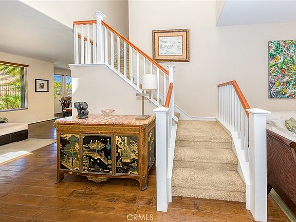 Welcome home to this Stevenson Ranch beauty! This gorgeous home features 3 bedrooms and 2.5 bathrooms at the end of a small cul-de-sac. The downstairs flooring is absolutely stunning and you can use the front room as either a formal dining or formal living area. The family room features a gas fireplace and media nook. The spacious kitchen has granite countertops, a center island, and pantry. The upstairs primary bedroom has a walk-in closet, separate tub and shower plus dual sinks. Convenient laundry and linen closets are located upstairs and the washer & dryer are included. The private backyard is nicely manicured and has amazing views. The HOA covers front yard maintenance and there is no Mello Roos tax! Great location close to Pico Canyon Elementary, the 5 Freeway, shopping centers, great restaurants, parks and hiking trails. This gorgeous home will not last so please schedule your showing today!