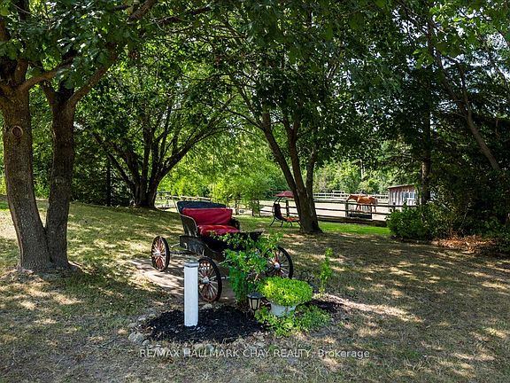 Roll out of bed every morning to the sights and sounds of your own forest. Feel the stress melt away as you walk 3.5 kilometres of nature trails without leaving your own property. All of this without losing the convenience of nearby shopping, schools and restaurants! This country escape is situated on 25 acres featuring a beautiful yard, horse paddocks, forests and ponds. The home is move-in ready, featuring a bright airy kitchen, large living room (with walkout to an expansive deck) and a finished basement. An 8-stall barn (winterized water, skylights, and rustic chandeliers!) includes an insulated kennel and dog run. The driveway and parking area are both paved.You might decide never to leave your own property, but if you do you're less than five minutes from the town of Sutton and Lake Simcoe, 30 minutes to the Go Train and an hour away from Toronto. When viewing give yourself time to walk the trails to capture the true essence of this wonderful property.