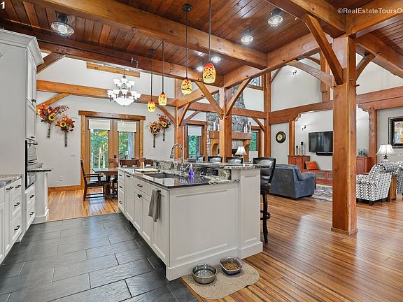 Rare opportunity to purchase this Custom Timber Frame home on 5.33 secluded acres with 25x25 shop. Almost 6000sf in the main home and a 1475sf Guest home above the 3 car oversized garage. This home has way too much to list here, see amenities list in the Document section. 600 amps of power to the building total with generator prewire and rough in. 2 Full service RV hook ups. Wine cellar, elevator shaft for future install, panic room/ gun safe, Workout room. Listing agent related to Seller.