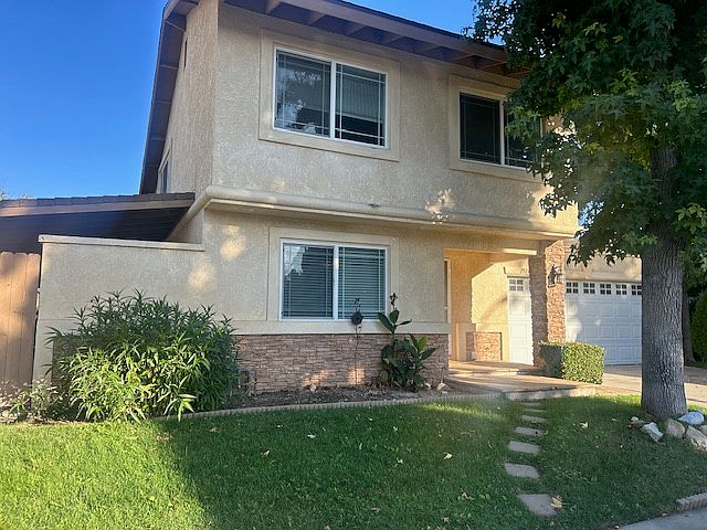 4+2 home in Old Orchard 2 community. Walk into a designated foyer which has a step-down living room which has access to the side patio. Continue in and the family room and dining room has cathedral ceilings and a beautiful fireplace. The kitchen has granite countertops and stainless-steel appliances. The master bedroom is downstairs and has an entire wall of closets behind mirror doors. Upstairs are 3 good sized bedrooms and a full bathroom. The home is located on a cul de sac street but not on the cul de sac, so street parking is easy for guests. At the end of the cul de sac is access to the Valencia paseo system where you can go for miles. Walking distance to Old Orchard Elementary, Placerita Junior High, and Hart High School. Great freeway access and proximity to shopping and restaurants.