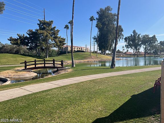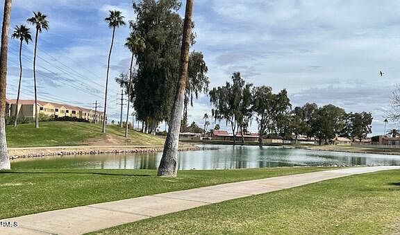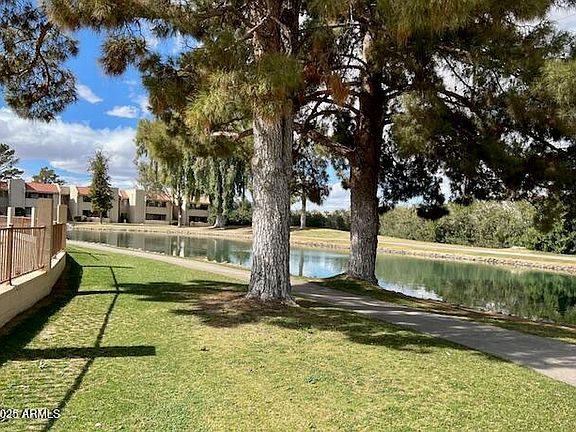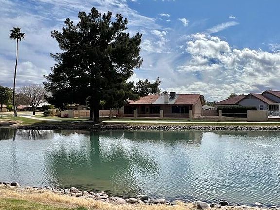 This 2-bedroom, 2-bathroom is nestled on a picturesque lake in Sun Lakes, AZ. With breathtaking water views, this home offers the perfect blend of comfort and tranquility. The living area features large windows that showcase the stunning lake views. The floor plan is ideal for entertaining and easy access to the patio for outdoor relaxation. The kitchen includes modern cabinets and appliances, ample quartz counter space, and plenty of storage, making meal prep a breeze. The primary suite offers a peaceful retreat with a walk-in closet. The second bedroom is perfect for guests or a home office, with the second bathroom conveniently located nearby. Enjoy outdoor living at its finest with a private patio overlooking the lakes. The kitchen and baths have been updated.